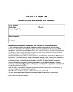 Uczestnik Konkursu i rodzic lub opiekun prawny zezwala na wykorzystanie jego imienia i nazwiska oraz danych kontaktowych w celu informowania o wynikach Konkursu oraz na publikację wizerunku uczestników w celach promujących ich osiągnięcia oraz pozytywny wizerunek placówki według załączonej zgody na Karcie zgłoszenia zgody.