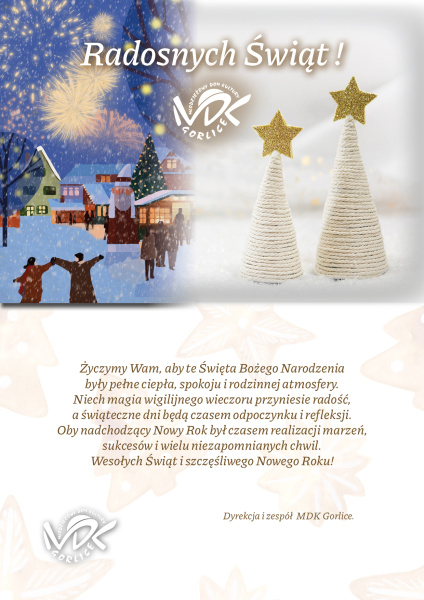 Spokojnych, rodzinnych i radosnych Świąt życzą dyrekcja i pracownicy Młodzieżowego Domu Kultury w Gorlicach